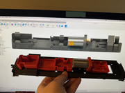 An empty coal train headed north across the Twin Creek Viaduct. Soon an impromptu photo line of folks stacked up. These locomotives built from P&D kits appeared on the cover of a 2006 issue of Model Railroader. Each currently has a 2" high-bass speaker in an enclosure.