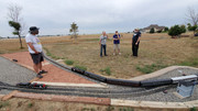 A view from across the property shows Gene explaining something to Craig, while David approaches Little Falls with the passenger train.
