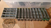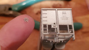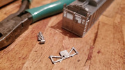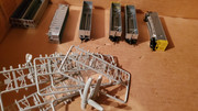 When we were looking around, I noticed several flats of old N scale Huberts coalporter shells of various roads, and was told I could take whatever I wanted. I grabbed a few UP to finish a trainset I have that will run on UP trackage, then noticed several BNSF cars. I wanted a trainset of them, but upon further inspection, the cars were built in 11/2004, whereas I'm modeling spring of that year, just a few months too late! Then we came to the decision that I could pass it off as a brand new trainset making its first trip west, so I grabbed enough for a train of them as well (in addition to another trainset I'd already completed of older BN style cars). After this, I was told to take some detail sprues to complete the cars, and was given a large box of them.