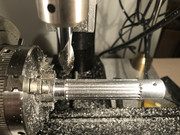 After learning a few things not to do, and considering the very long unsupported length of the part, I chose to make very light cuts, only 0.005 deep. Most cuts were made with oil to reduce vibration. Remember, the Sherline mill isn't a full-size machining center. Have patience, grasshopper!