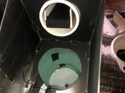 Found another couple of photos on my phone. The roller assembly will plug into the end of the beltway, which is enclosed in PVC tubing. Coal falls down to a funnel that delivers it to an awaiting car. The belt is made from elastic waistband material.