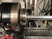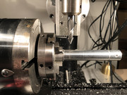 Off the rotary table and back on the lathe after a bit of cleaning up. Here's where the barrel profiling began. Sorry, but I got tired and didn't take any photos of the profiling operation.