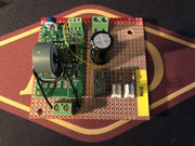 A small power supply allows it to be connected to any 12 volt source, even a Tortoise motor thanks to a bridge rectifier at the input. If connected to a Tortoise, an electrolytic capacitor keeps the detector working during the momentary power interruption when a controlling toggle switch is flipped. Frankly my days of wiring under the layout are limited, so I intend to install this in a convenient location and vampire power from the nearest Tortoise motor.