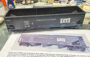 I think a tribute car for Allen is appropriate to add to the A&O fleet. I used some K4 decals for the V&O logo, road name and reporting marks. The data and weight marks are from various custom decal remnants. A fun Easter egg; the re-weigh marks are off Bob Sobel’s New River & Western! The car is a Weaver AAR 70 ton offset hopper. I followed the HO custom decorated cars by Accrual made for the NMRA 7th Division. These were “approved” by Allen himself. After a light weathering, some hand drawn “chalk marks” will memorialize Allen McClelland.