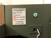 After the operator presses the button when it is illuminated green, it switches to red and the MP3 player starts a sound track of an actual Whiting Rotaside going through a full dump cycle.