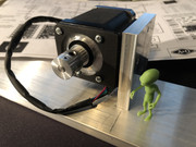 This doesn't look like much, but it is the result of a lot of planning. Wish me luck! This is a NEMA17 stepper motor mounted on a pivoting platform (diving board) to provide downward tension on a G22 timing belt. Since I'm behind in my work, so I've enlisted some help, recruited at the recent Denver Train Show.