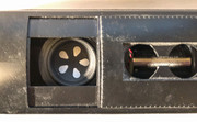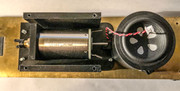 The second photo shows layout planning for the TB 1931 speaker. There is a faint pencil line on the walkway tread indicating the center of the dynamic brake fan. The speaker will be mounted close to the roof of the shell, with the round driver firing up and out the dynamic brake fan.